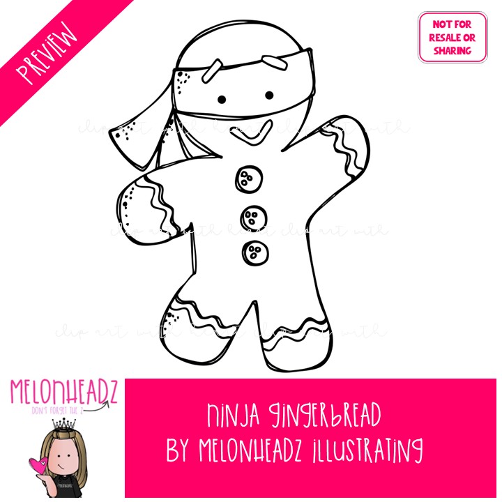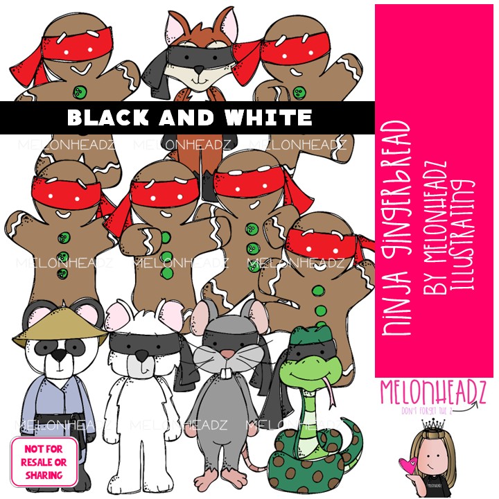 Ninja Gingerbread clip art, Book Companion clip art, Literature clip art BLACK AND WHITE: This illustrated set contains all of the clip art images as shown in the preview picture. BLACK AND WHITE  illustrations only.