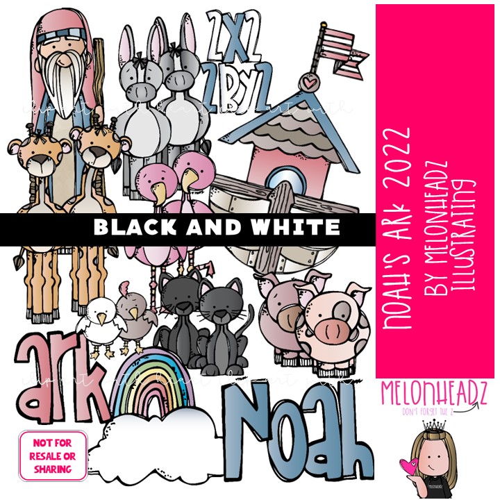 Noah’s Ark clip art 2022, Bible BLACK AND WHITE: This illustrated set contains all of the clip art images as shown in the preview picture. BLACK AND WHITE illustrations included.