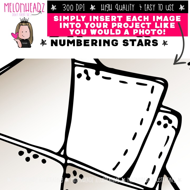 Numbering Stars clip art, literature, book companion COLORED Version: This illustrated set contains all of the clip art images as shown in the preview picture. COLORED illustrations included.