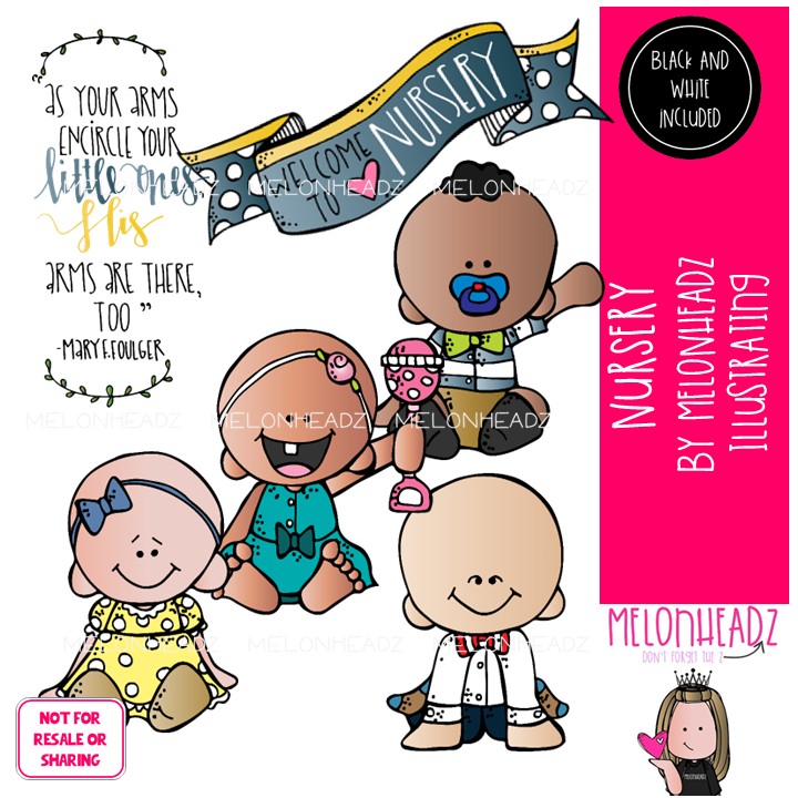 Nursery clip art, Baby clip art, LDS clip art Mini: This illustrated set contains all of the clip art images as shown in the preview picture. COLORED and BLACK AND WHITE illustrations included.