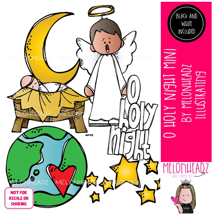 O Holy Night clip art Nativity clip art, Christmas clip art Mini: This illustrated set contains all of the clip art images as shown in the preview picture. COLORED and BLACK AND WHITE illustrations included.