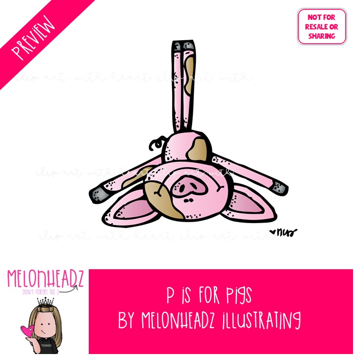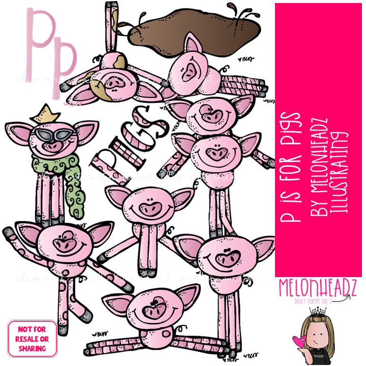 P is for pigs clip art COLORED Version: This illustrated set contains all of the clip art images as shown in the preview picture. COLORED illustrations only.