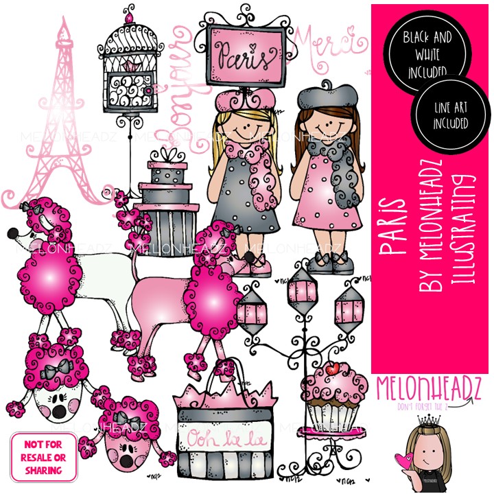 Paris clip art Eiffel Tower clip art COMBO PACK: This illustrated set contains all of the clip art images as shown in the preview picture. BLACK AND WHITE, COLORED and LINE ART illustrations included.