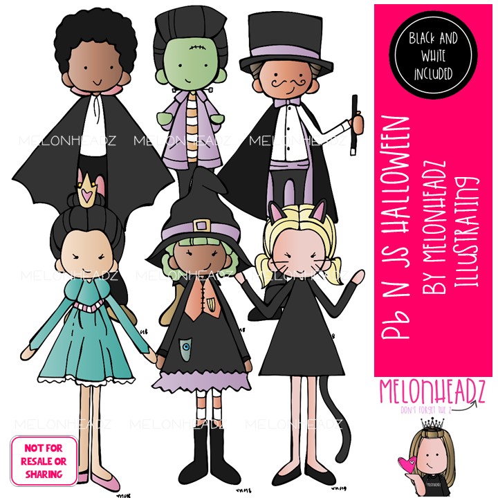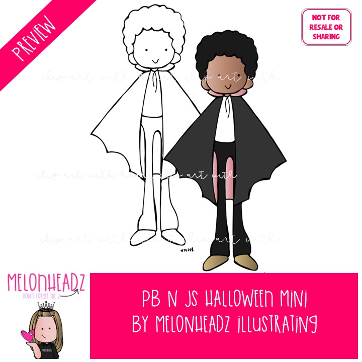 PB n Js clip art, Halloween Mini: This illustrated set contains all of the clip art images as shown in the preview picture. COLORED and BLACK AND WHITE illustrations included.