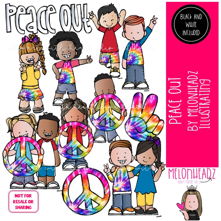 Peace Out clip art End of Year clip art Last day of school clip art COMBO PACK: This illustrated set contains all of the clip art images as shown in the preview picture. COLORED and BLACK AND WHITE illustrations included.