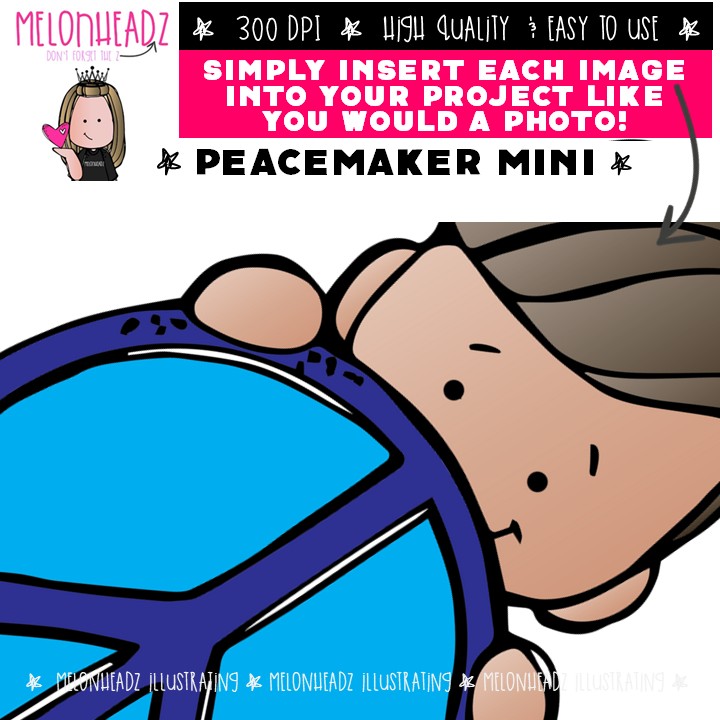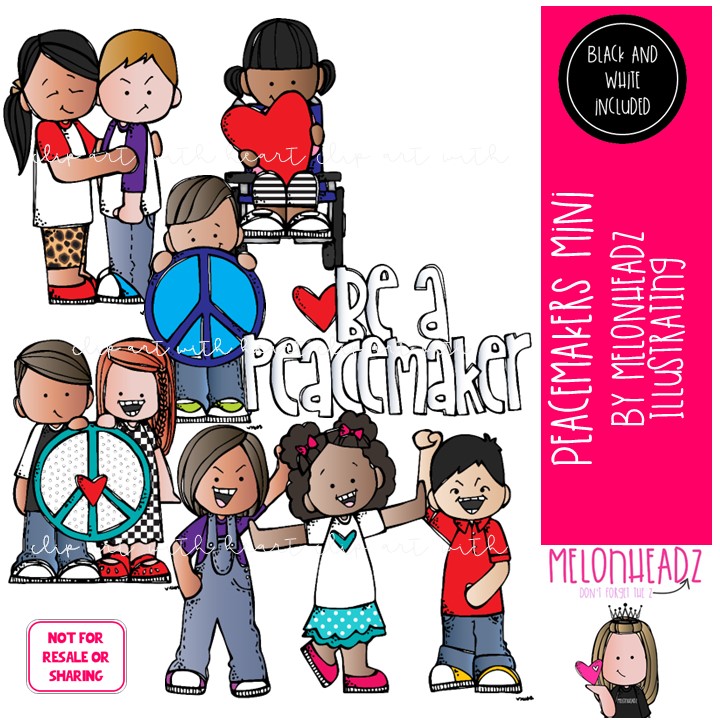 Peacemaker clip art, kind, keeping peace Mini: This illustrated set contains all of the clip art images as shown in the preview picture. COLORED and BLACK AND WHITE illustrations included.