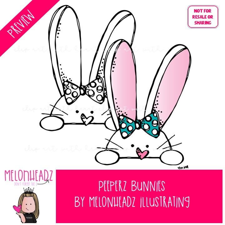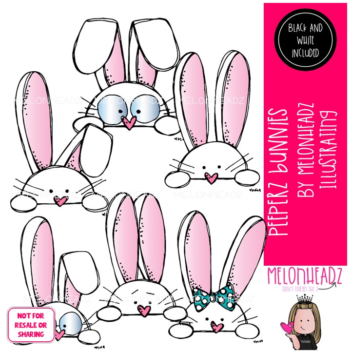 Peeperz clip art Bunnies clip art Easter clip art Mini: This illustrated set contains all of the clip art images as shown in the preview picture. COLORED and BLACK AND WHITE  illustrations included.