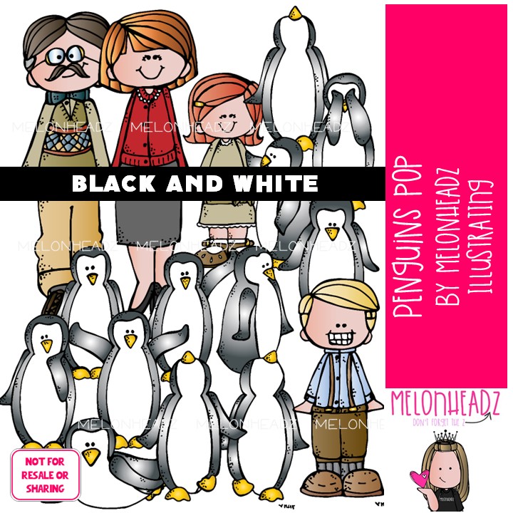 Penguins Pop clip art, literature, book companion BLACK AND WHITE: This illustrated set contains all of the clip art images as shown in the preview picture. BLACK AND WHITE illustrations included.