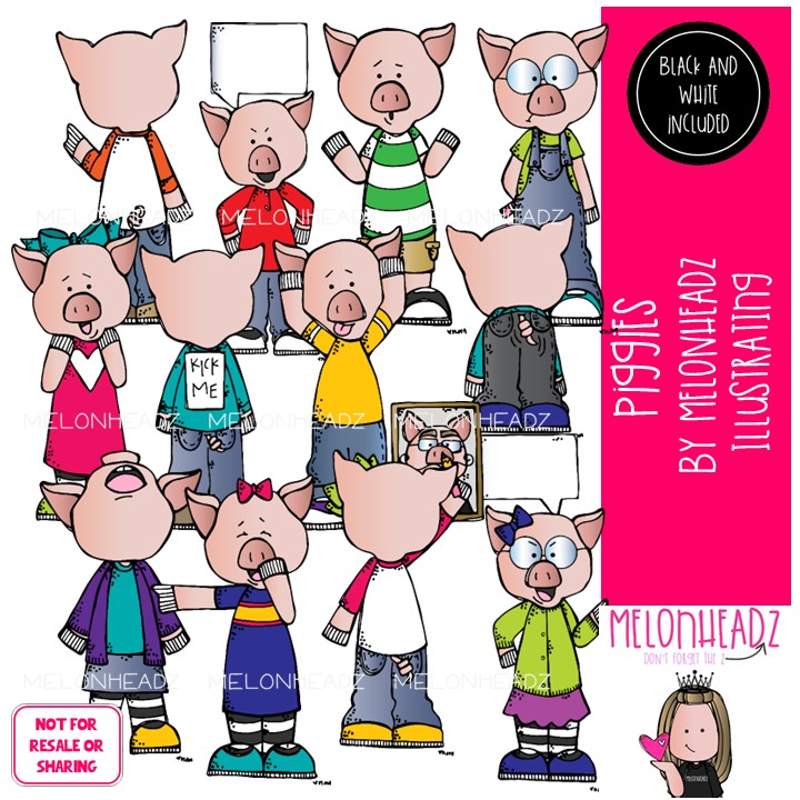 Piggies clip art, literature, book companion COMBO PACK: This illustrated set contains all of the clip art images as shown in the preview picture. COLORED and BLACK AND WHITE illustrations included.