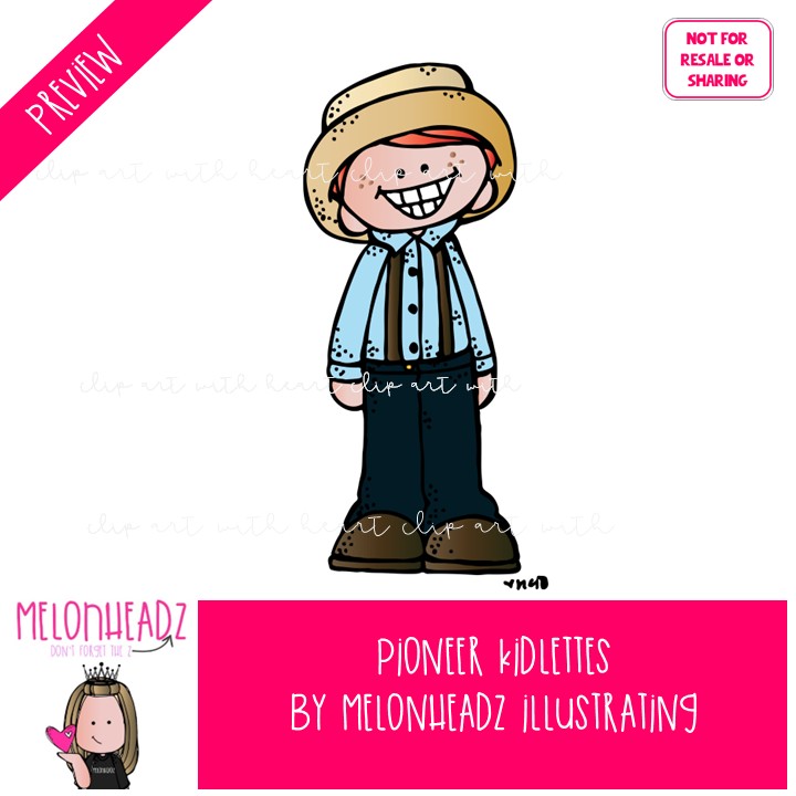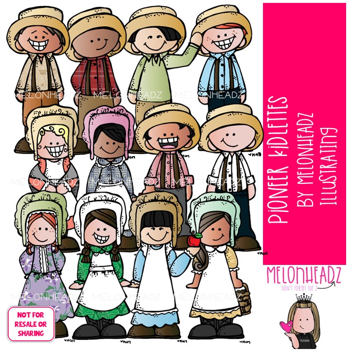 Pioneer Kidlettes clip art, historical COLORED Version: This illustrated set contains all of the clip art images as shown in the preview picture. COLORED illustrations included.