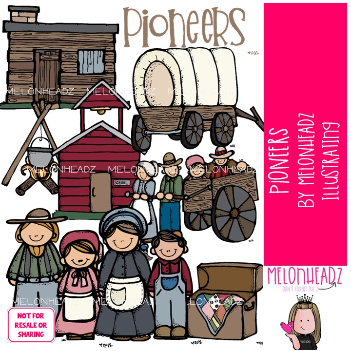 Pioneers clip art, wagon, cabin COLORED Version: This illustrated set contains all of the clip art images as shown in the preview picture. COLORED illustrations included.