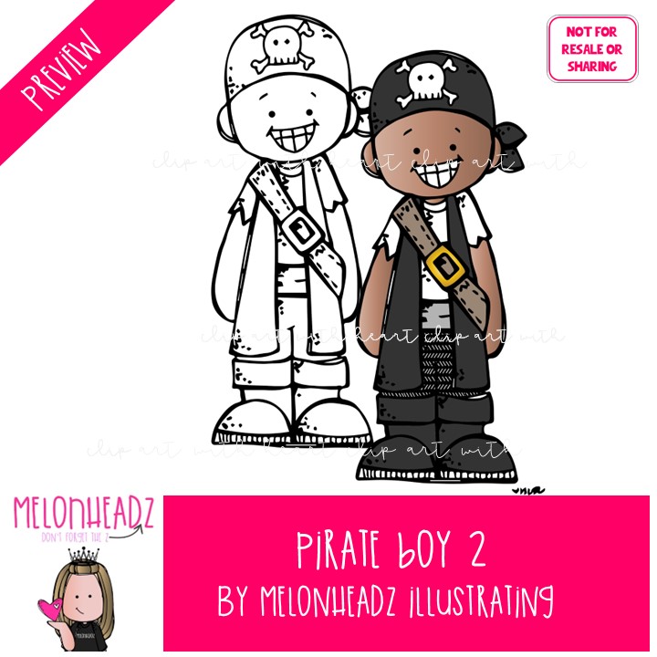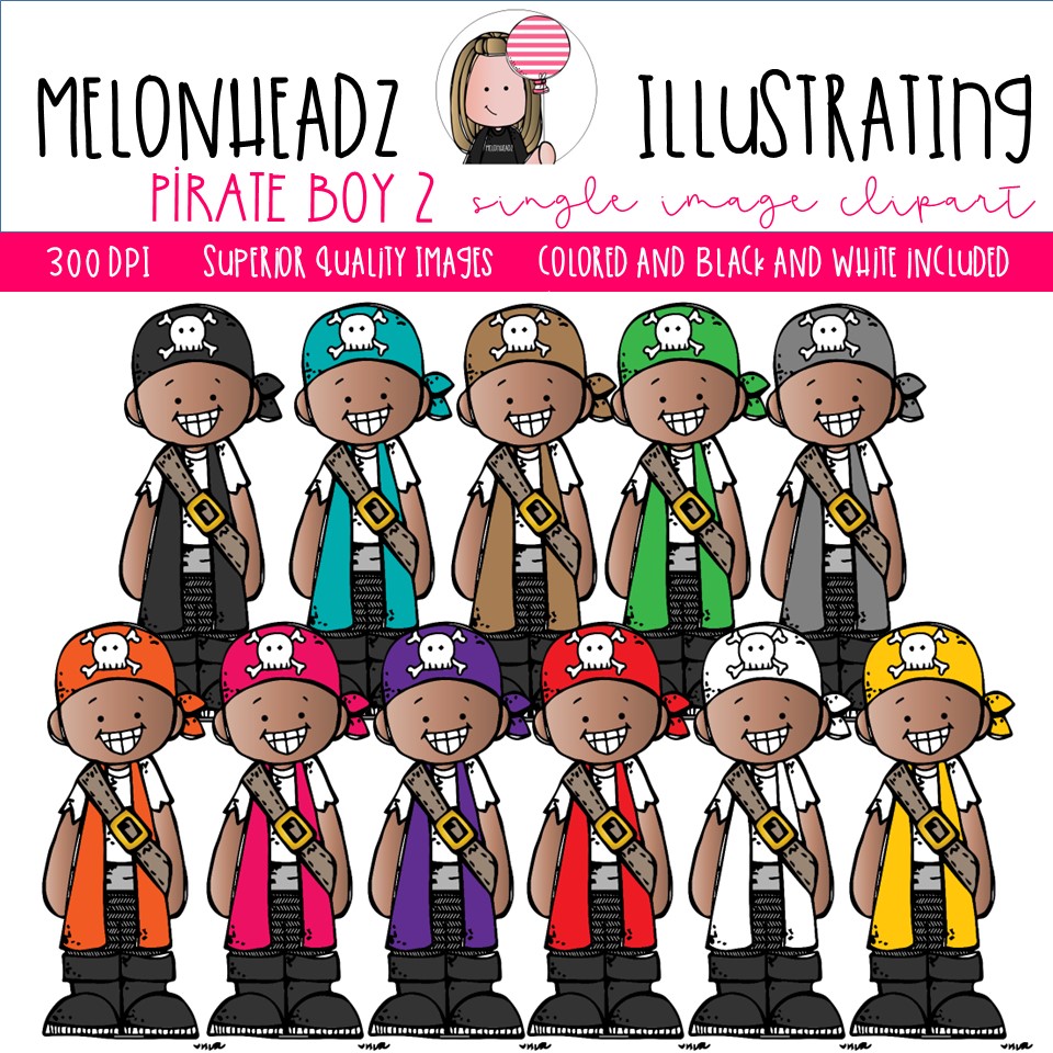 Pirate boy 2 clip art, Single image: This illustrated set contains all of the clip art images as shown in the preview picture. COLORED and BLACK AND WHITE illustrations included.