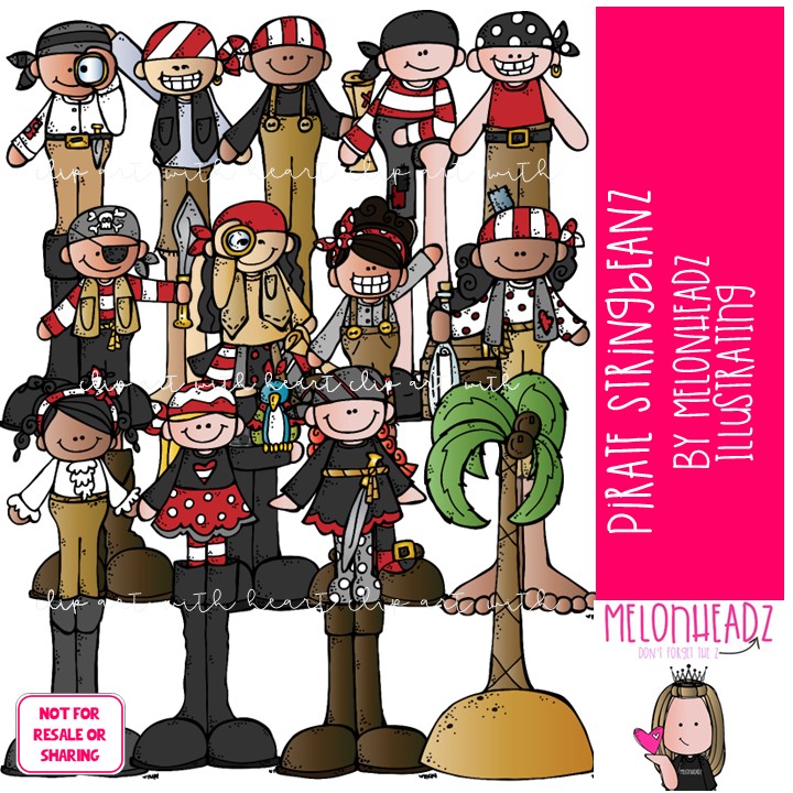 Pirate clip art, Stringbeanz COLORED Version: This illustrated set contains all of the clip art images as shown in the preview picture. COLORED illustrations included.