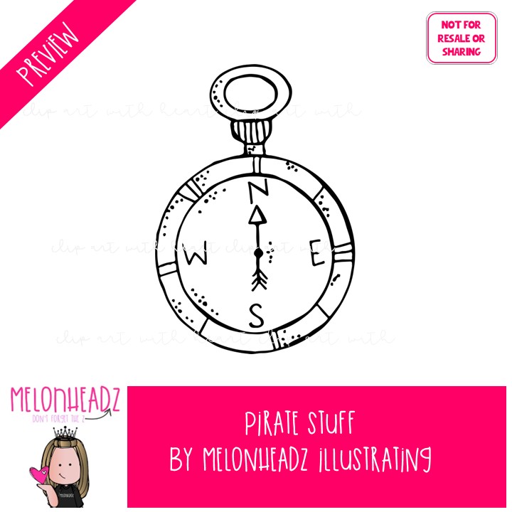 Pirate Stuff clip art, ship, compass, message in a bottle BLACK AND WHITE: This illustrated set contains all of the clip art images as shown in the preview picture. BLACK AND WHITE illustrations included.