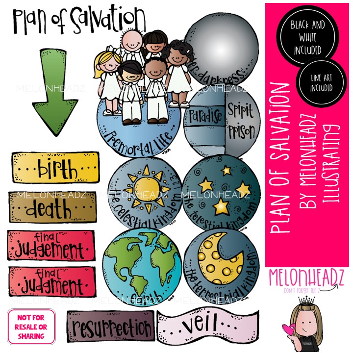 Plan of Salvation clip art, LDS clip art, Plan of Happiness clip art COMBO PACK: This illustrated set contains all of the clip art images as shown in the preview picture. COLORED, BLACK AND WHITE and LINE ART illustrations included.
