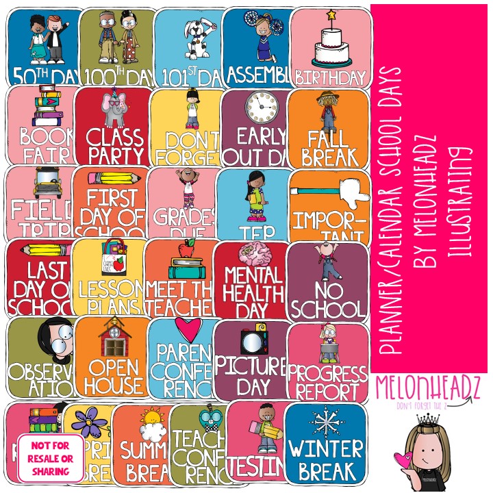 Planner / Calendar Digital Stickers or Printables School Days