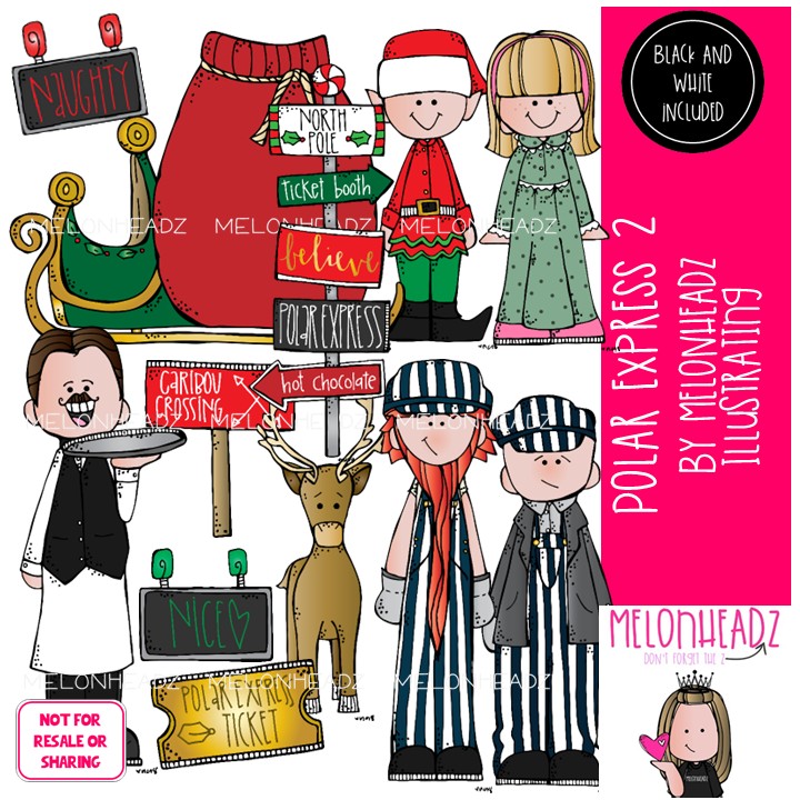 Polar Express clip art Set 2, Christmas clip art, Book Companion COMBO PACK: This illustrated set contains all of the clip art images as shown in the preview picture. COLORED and BLACK AND WHITE illustrations included.