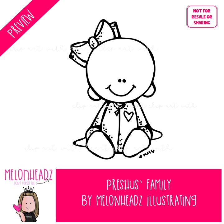 Preshus’ Family clip art, Melonheadz Character BLACK AND WHITE: This illustrated set contains all of the clip art images as shown in the preview picture. BLACK AND WHITE illustrations included.