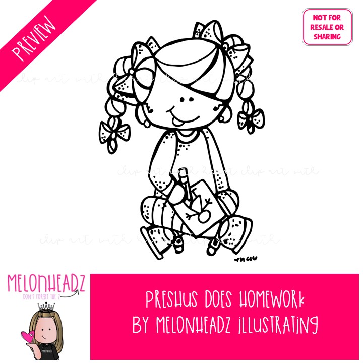 Preshus Does Homework clip art, Melonheadz Characters BLACK AND WHITE: This illustrated set contains all of the clip art images as shown in the preview picture. BLACK AND WHITE illustrations included.