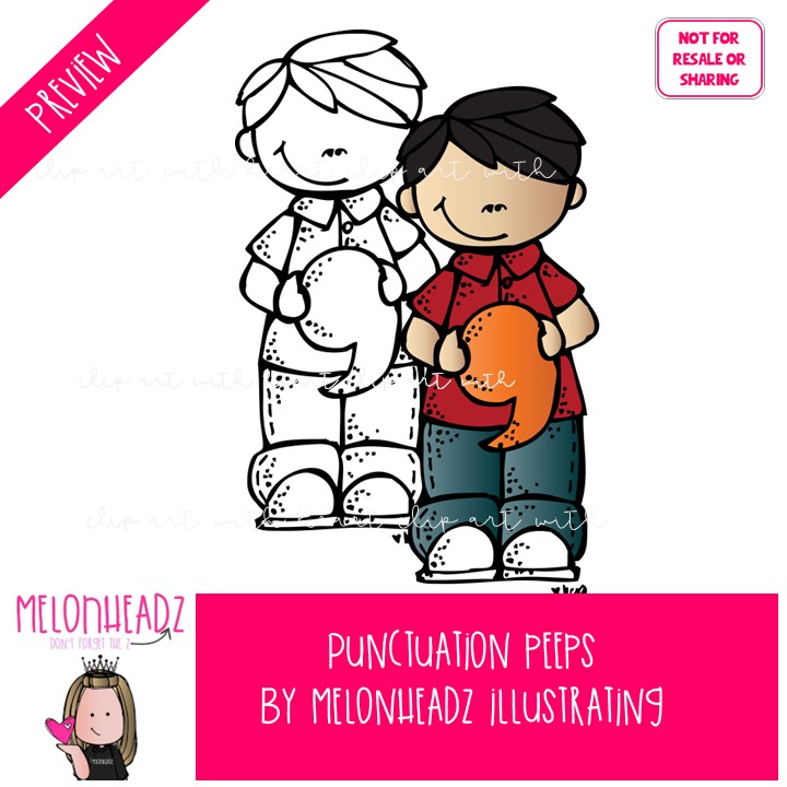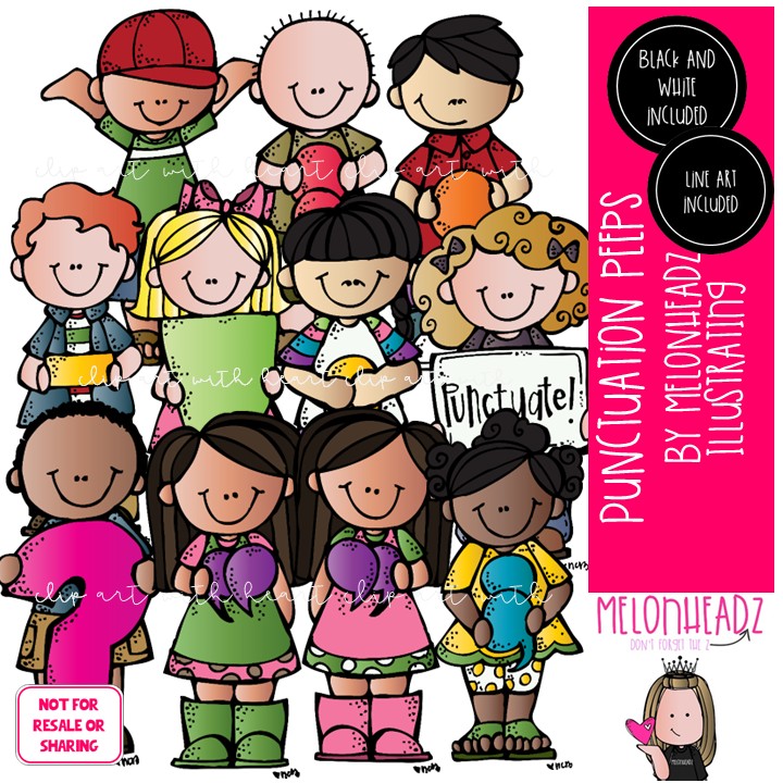 Punctuation Peeps clip art, Grammar clip art COMBO PACK: This illustrated set contains all of the clip art images as shown in the preview picture. COLORED, LINE ART, and BLACK AND WHITE illustrations included.