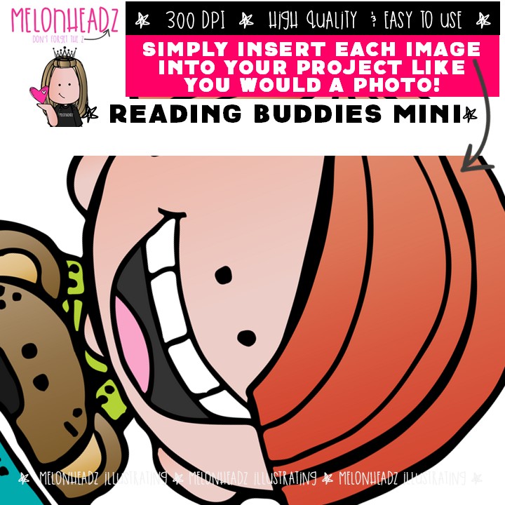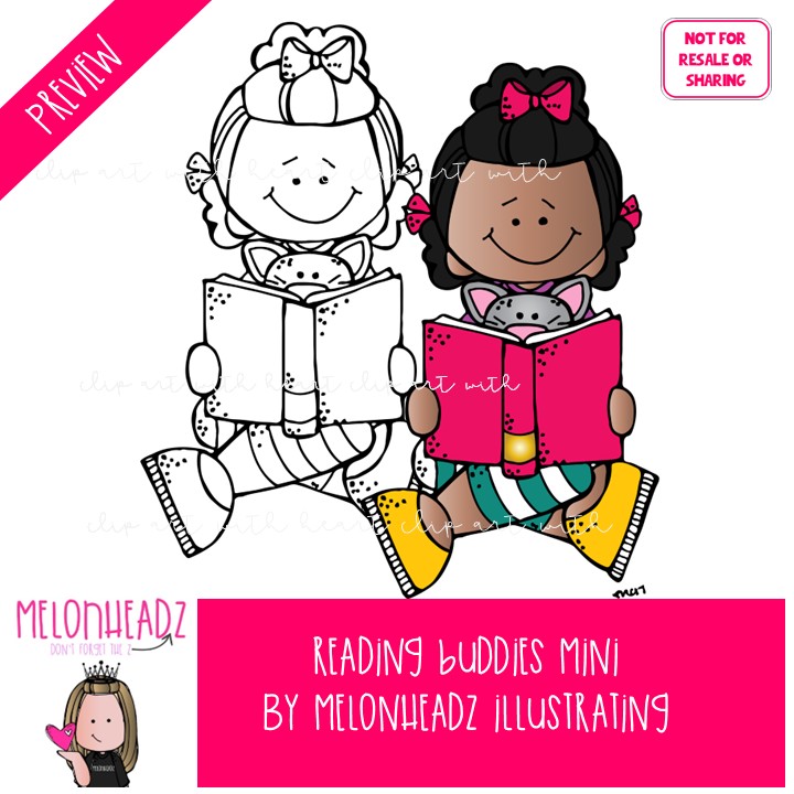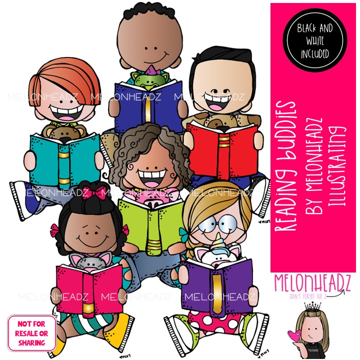 Reading Buddies clip art, book Mini: This illustrated set contains all of the clip art images as shown in the preview picture. COLORED and BLACK AND WHITE illustrations included.
