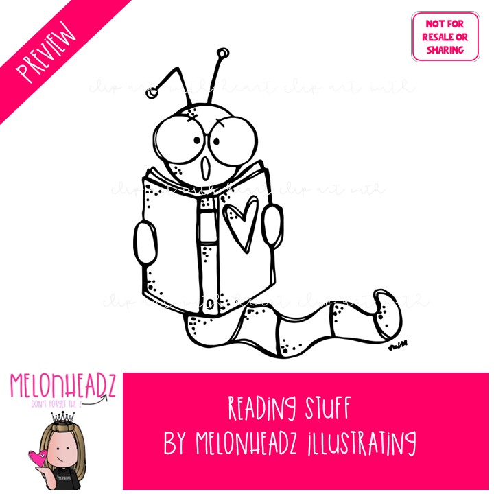 Reading Stuff clip art, Book clip art BLACK AND WHITE: This illustrated set contains all of the clip art images as shown in the preview picture. BLACK AND WHITE illustrations included.