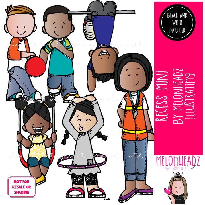 Recess clip art Play clip art Mini: This illustrated set contains all of the clip art images as shown in the preview picture. COLORED and BLACK AND WHITE illustrations included.