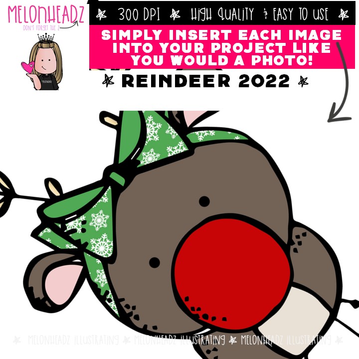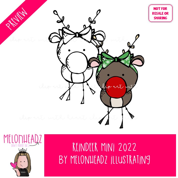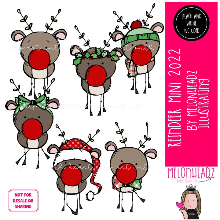 Reindeer clip art, Christmas clip art Mini: This illustrated set contains all of the clip art images as shown in the preview picture. COLORED  and BLACK AND WHITE illustrations included.