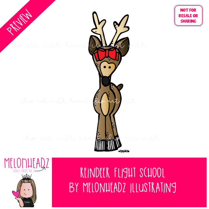Reindeer Flight School clip art, Christmas clip art COLORED Version