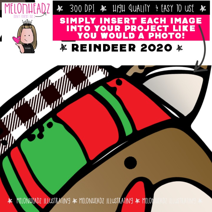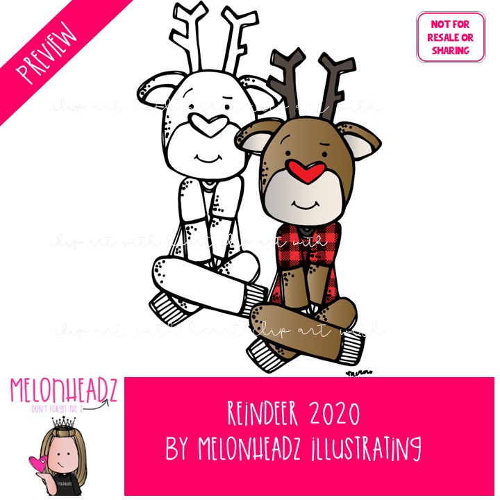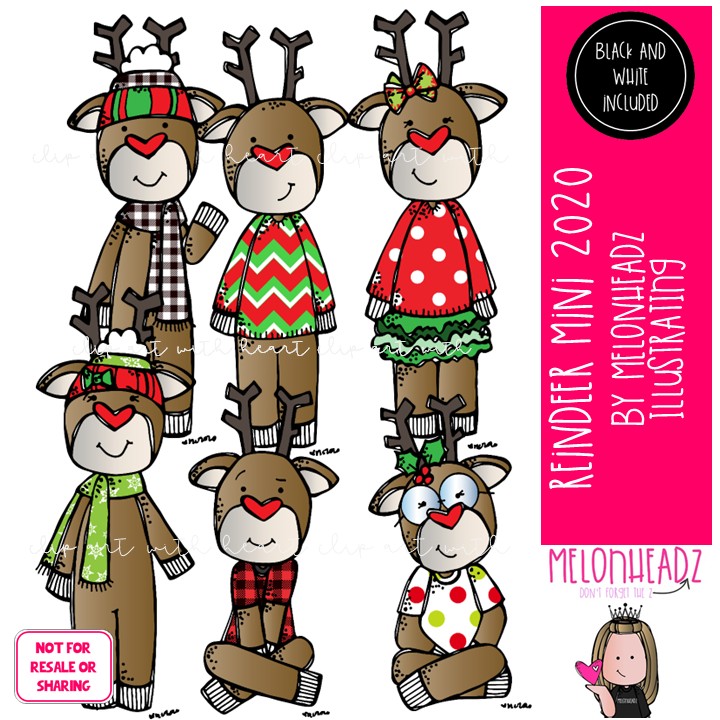Reindeer clip art 2020, Christmas clip art Mini: This illustrated set contains all of the clip art images as shown in the preview picture. COLORED and BLACK AND WHITE  illustrations included.