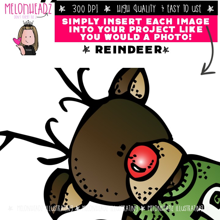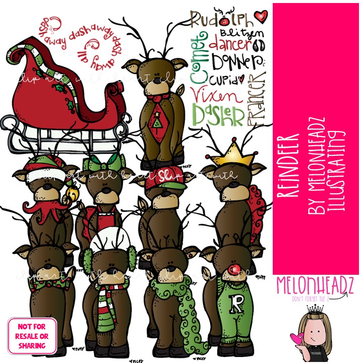 Reindeer clip art, Christmas clip art COLORED Version: This illustrated set contains all of the clip art images as shown in the preview picture. COLORED illustrations included.