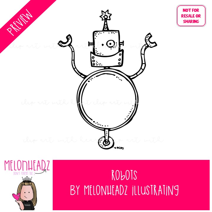 Robots clip art, Technology clip art LINE ART and BLACK AND WHITE: This illustrated set contains all of the clip art images as shown in the preview picture. LINE ART and BLACK AND WHITE illustrations included.