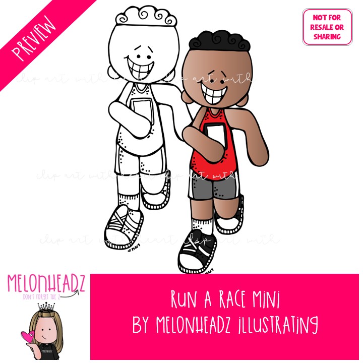 Run a Race clip art, sport, kid Mini: This illustrated set contains all of the clip art images as shown in the preview picture. COLORED and BLACK AND WHITE illustrations included.