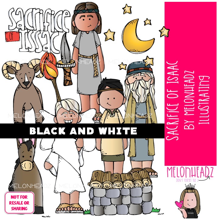Sacrifice of Isaac clip art, Bible BLACK AND WHITE: This illustrated set contains all of the clip art images as shown in the preview picture. BLACK AND WHITE illustrations included.