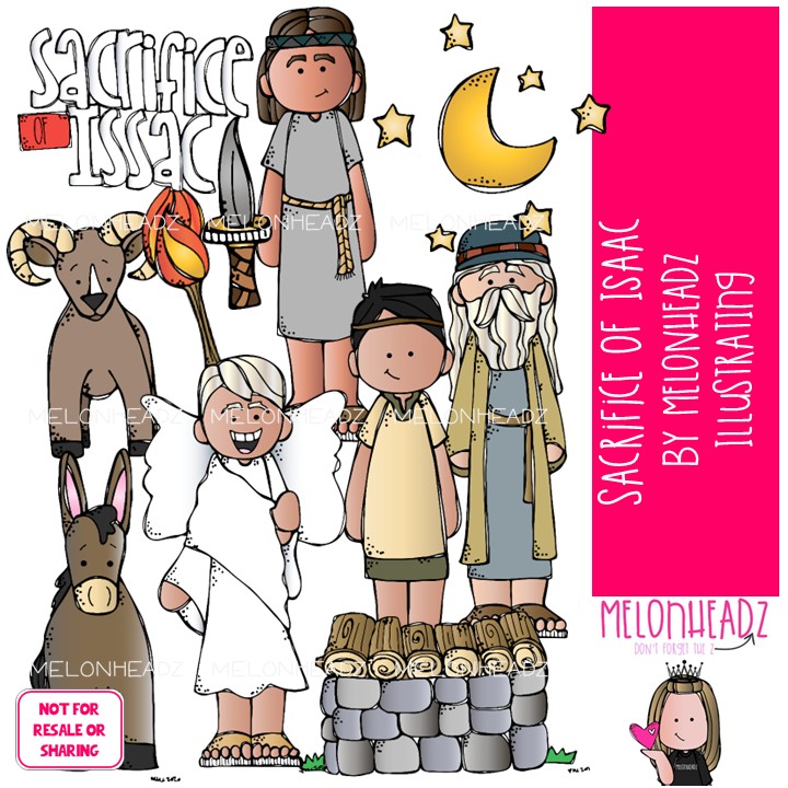 Sacrifice of Isaac clip art, Bible COLORED Version: This illustrated set contains all of the clip art images as shown in the preview picture. COLORED illustrations included.
