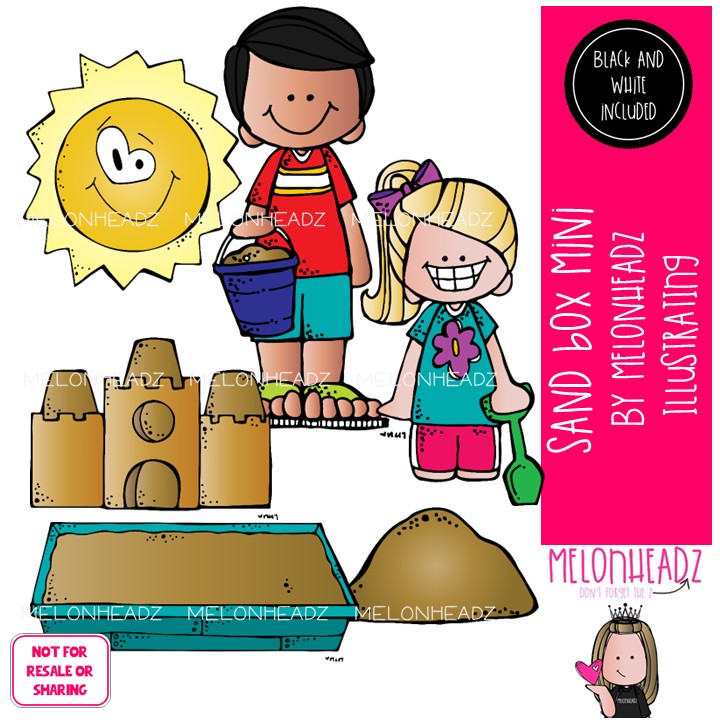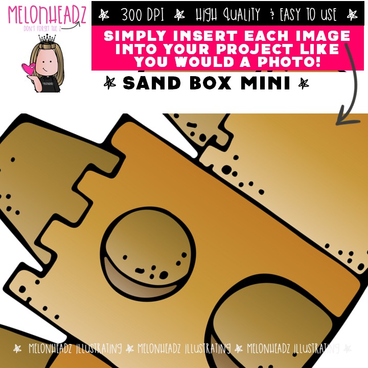 Sand Box Mini clip art, play, outdoors Mini: This illustrated set contains all of the clip art images as shown in the preview picture. COLORED and BLACK AND WHITE illustrations included.