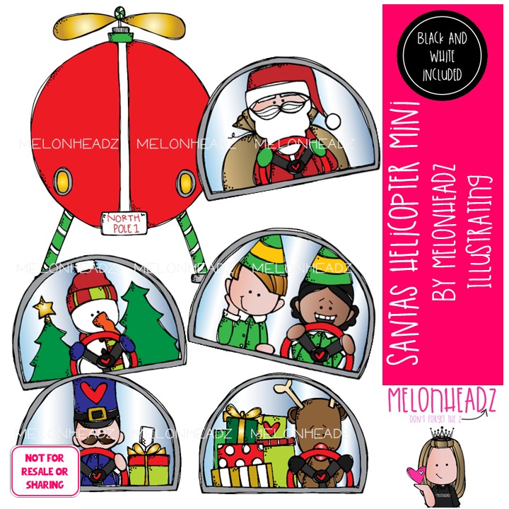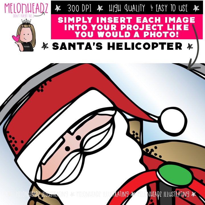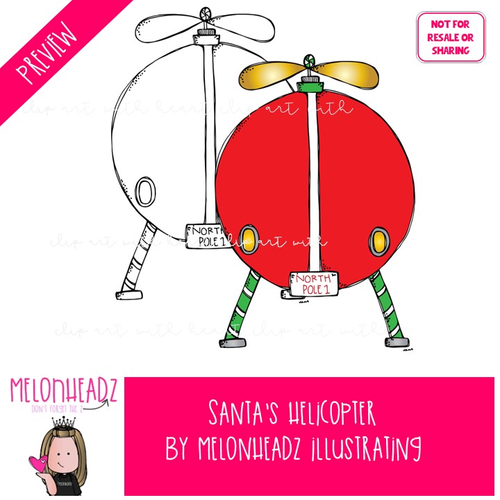 Santa’s Helicopter clip art, Christmas clip art Mini: This illustrated set contains all of the clip art images as shown in the preview picture. COLORED and BLACK AND WHITE illustrations included.
