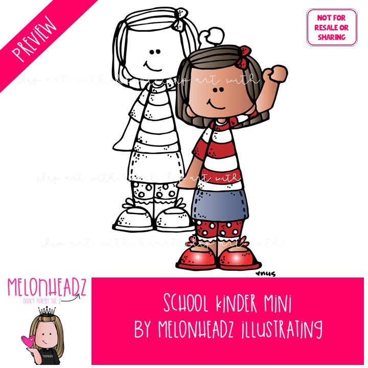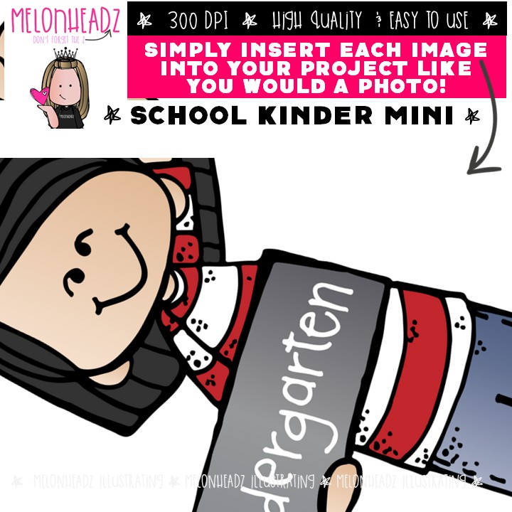 School clip art, Kindergarten Mini: This illustrated set contains all of the clip art images as shown in the preview picture. COLORED and BLACK AND WHITE illustrations included.