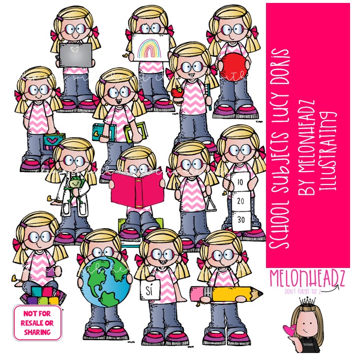 School Subjects clip art, Lucy Doris, Melonheadz Characters COLORED Version