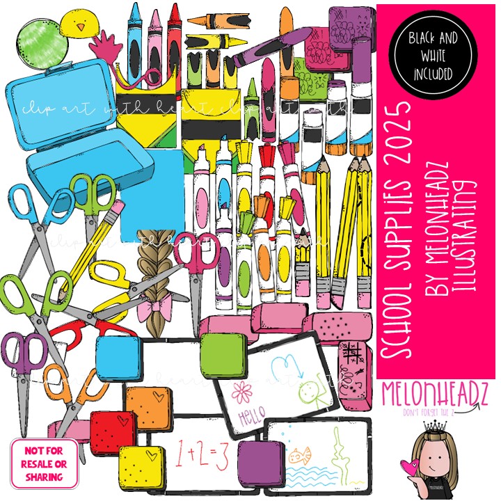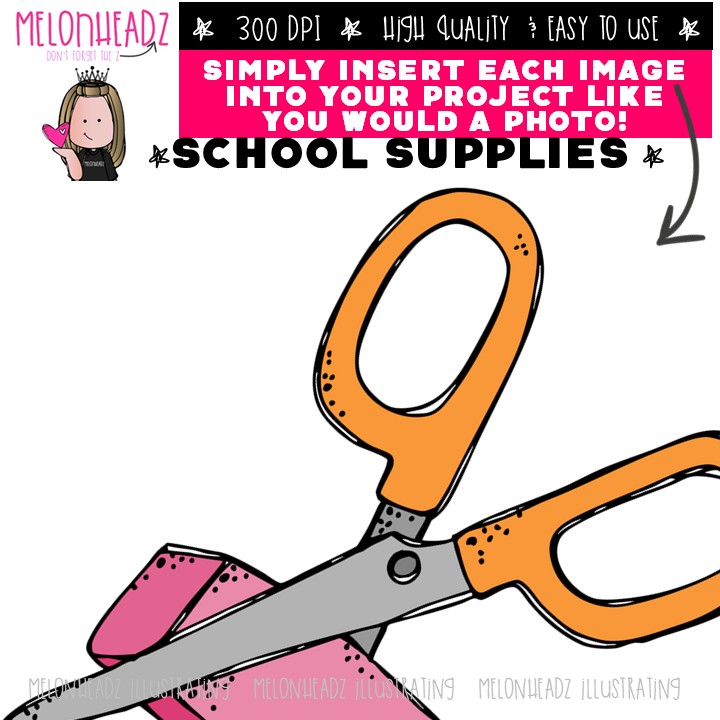 School Supplies clip art Office Supplies clip art COMBO PACK: This illustrated set contains all of the clip art images as shown in the preview picture. COLORED and BLACK AND WHITE illustrations included.