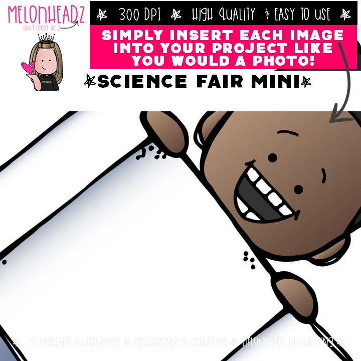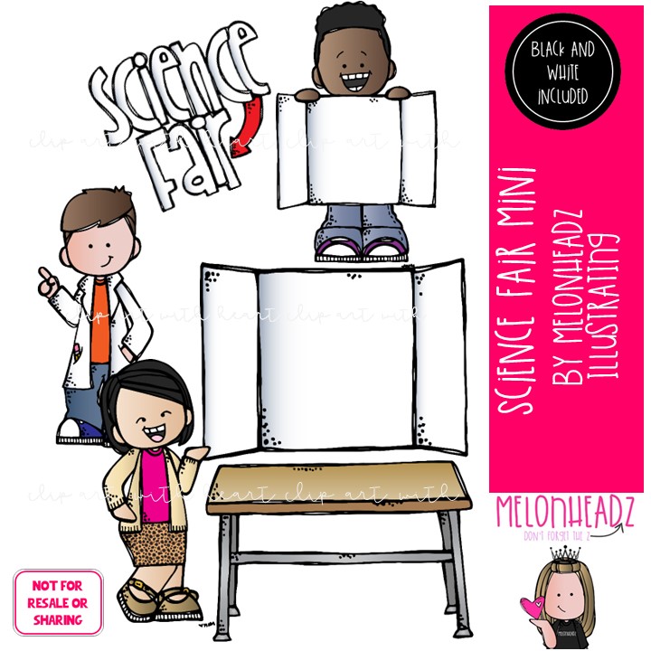 Science Fair clip art, school Mini: This illustrated set contains all of the clip art images as shown in the preview picture. COLORED and BLACK AND WHITE illustrations included.