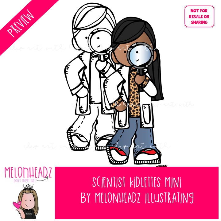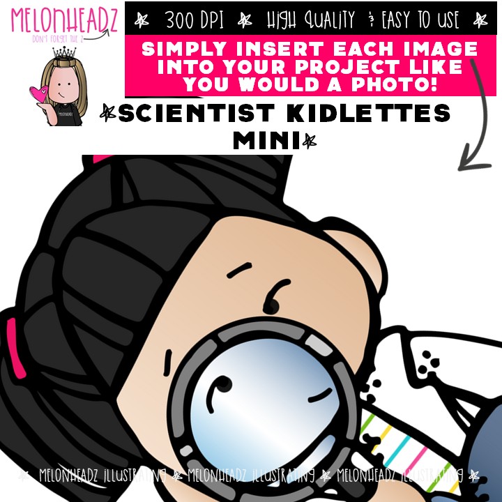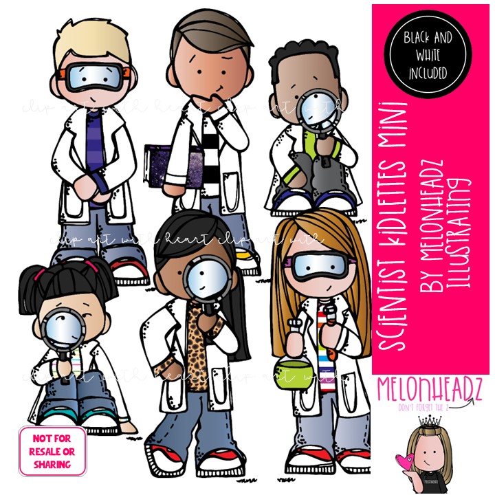 Scientist clip art, Science, kids Mini: This illustrated set contains all of the clip art images as shown in the preview picture. COLORED and BLACK AND WHITE illustrations included.