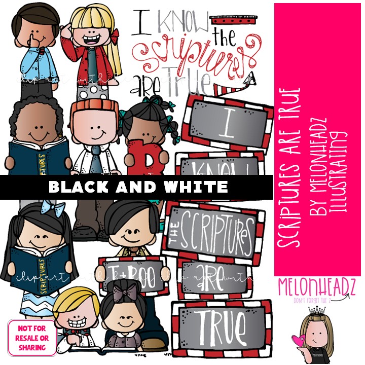Scriptures are true clip art, LDS BLACK AND WHITE: This illustrated set contains all of the clip art images as shown in the preview picture. BLACK AND WHITE illustrations included.