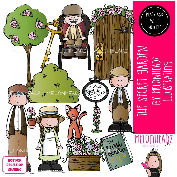 The Secret Garden clip art, literature, book companion, COMBO PACK: This illustrated set contains all of the clip art images as shown in the preview picture. COLORED and BLACK AND WHITE illustrations included.
