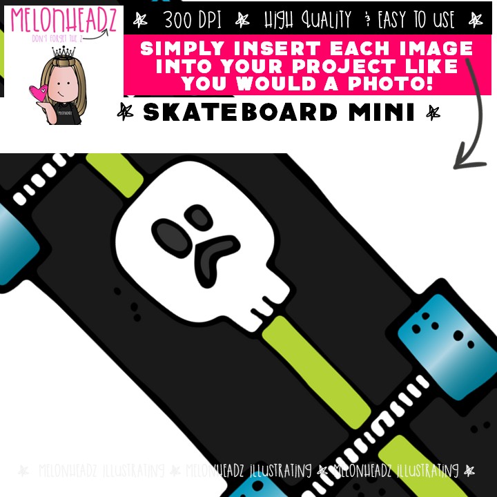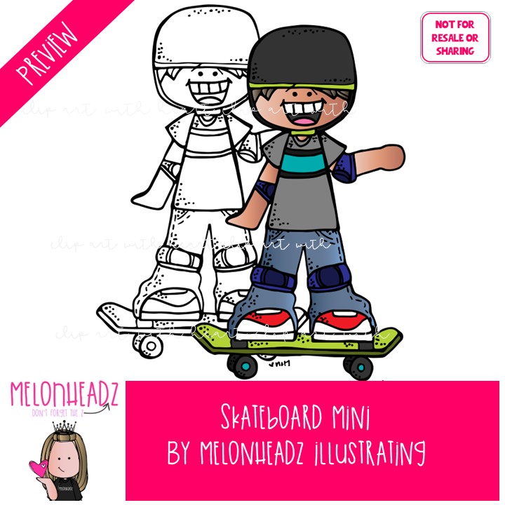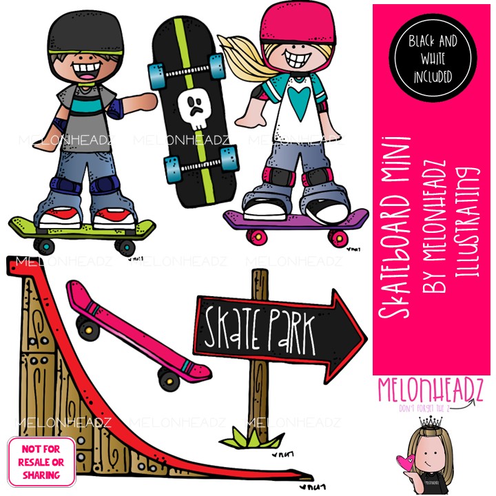 Skateboard clip art, hobby, activity Mini: This illustrated set contains all of the clip art images as shown in the preview picture. COLORED and BLACK AND WHITE illustrations included.