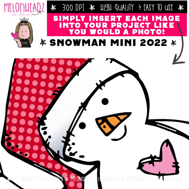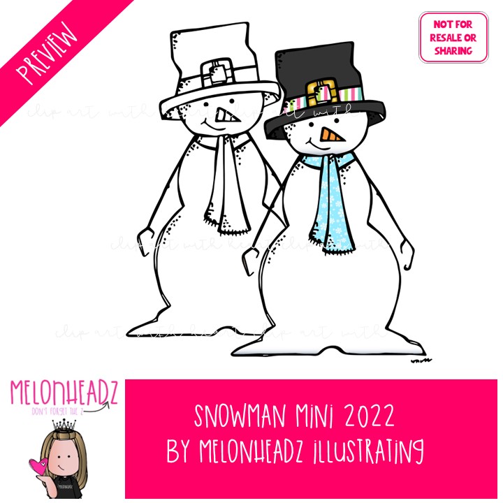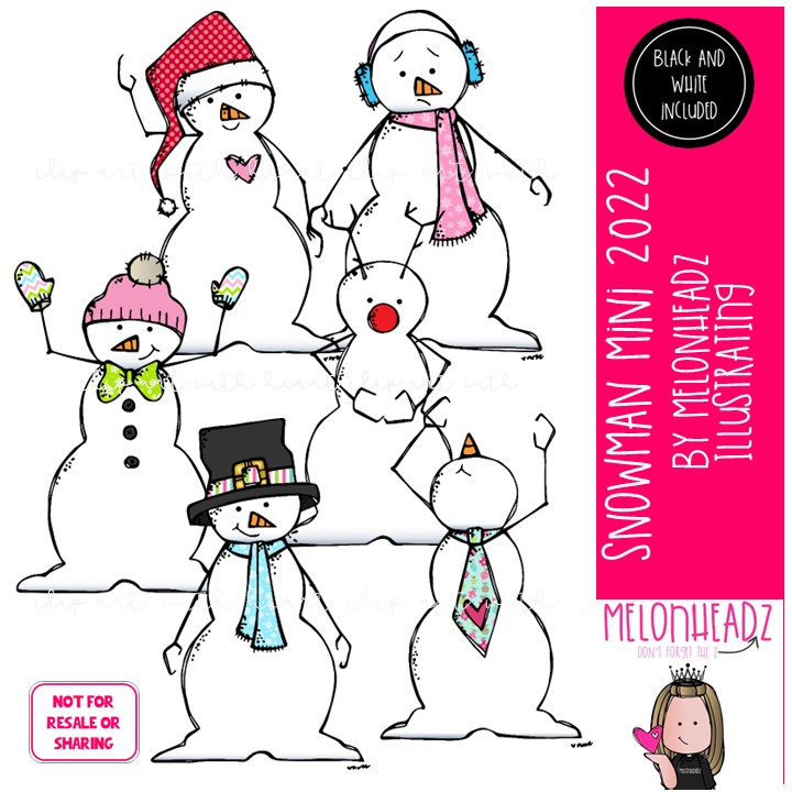 Snowman clip art 2022, Christmas clip art, Winter clip art Mini: This illustrated set contains all of the clip art images as shown in the preview picture. COLORED  and BLACK AND WHITE illustrations included.