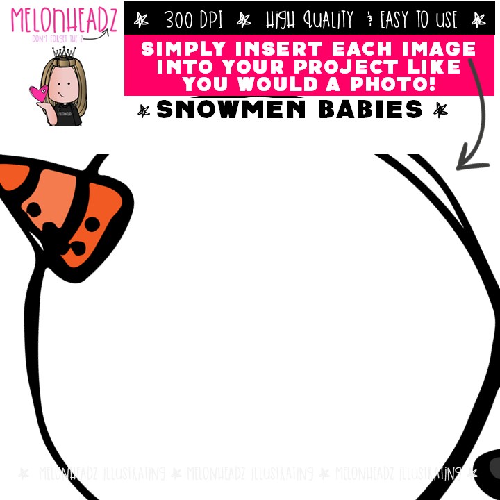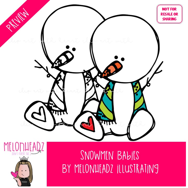 Snowmen Babies clip art, Winter clip art Mini: This illustrated set contains all of the clip art images as shown in the preview picture. COLORED and BLACK AND WHITE  illustrations included.