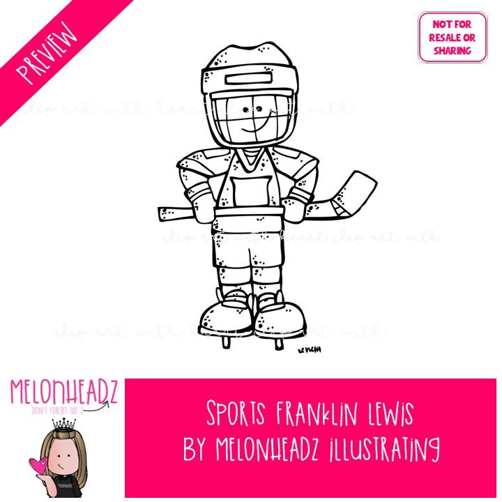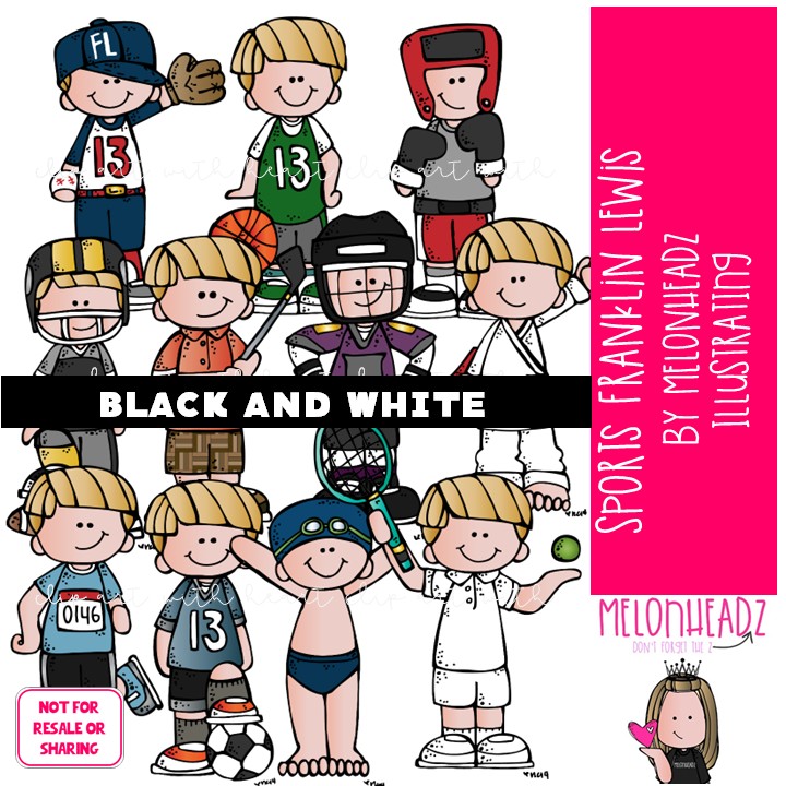 Sports clip art, Franklin Lewis, Melonheadz Characters BLACK AND WHITE