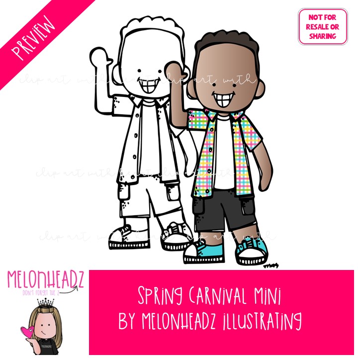 Spring Carnival clip art, flower, balloon Mini: This illustrated set contains all of the clip art images as shown in the preview picture. COLORED and BLACK AND WHITE illustrations included.