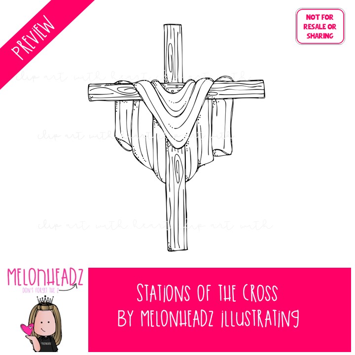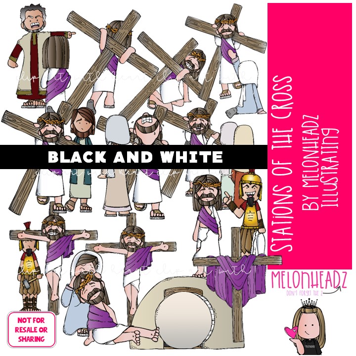 Stations of the Cross clip art Crucifixion clip art Jesus clip art Bible clip art BLACK AND WHITE: This illustrated set contains all of the clip art images as shown in the preview picture. BLACK AND WHITEÂ illustrations only.